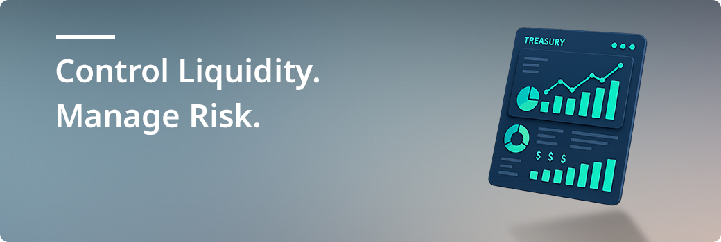 Our Treasury Management System (TMS) is a tailored and optimized solution to support and streamline key treasury functions, offering seamless deal registration and integrated workflows with the possibility to manage liquidity and open currency positions, monitor, and mitigate financial risks.